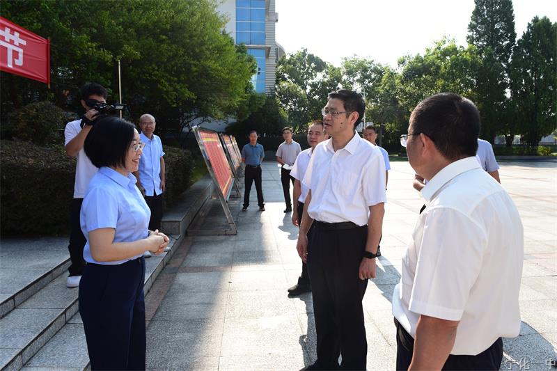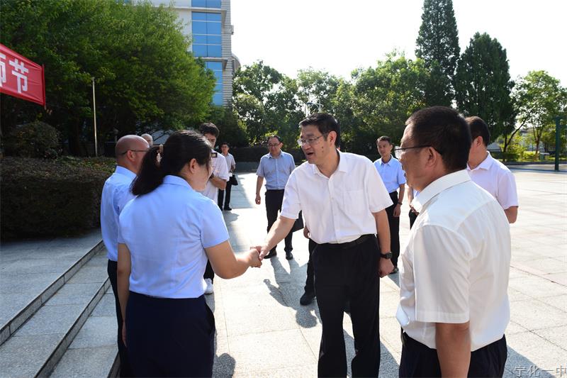 9月5日上午 ,在第41个教师节来临之际,宁化县委书记王胜文,县委常委、常务副县长伍毓庆,县教育局局长张凌鸿一行莅临我校,代表县委、县府开展教师节慰问。宁化一中党总支书记吴太明、校长赖国强全程陪同。