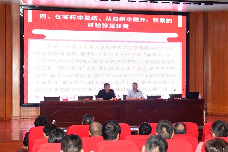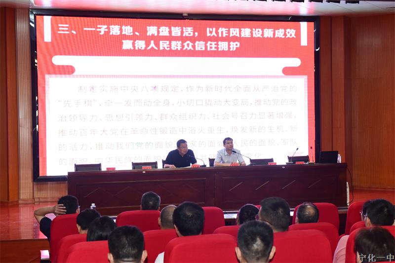 27日上午,学校党总支书记吴太明从四个方面为全校教师解读了《党的十八大以来深入贯彻中央八项规定精神的成效和经验》文件精神,强调我们的教育教学工作要更好把握和运用党的十八大以来深入贯彻中央八项规定精神的成效和经验,以优良作风凝心聚力投身教育,为宁化一中教育高质量发展提供有力保障。