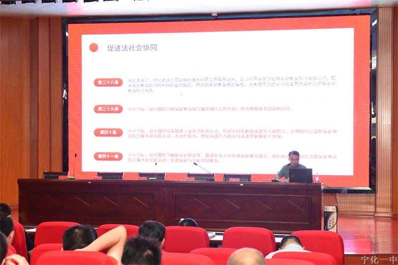 29日上午江宏副校长进行了以《家庭教育促进法》为主题的法治教育。江副校长从亮点、总则及责任等方面对《家庭教育促进法》进行深度解读,希望全体教师们更加深入了解学校教育与家庭教育的关系,通过家长学校、家校联系等途径进一步提高家长的家庭教育意识和能力,为未成年人的全面发展提供更好的保障。