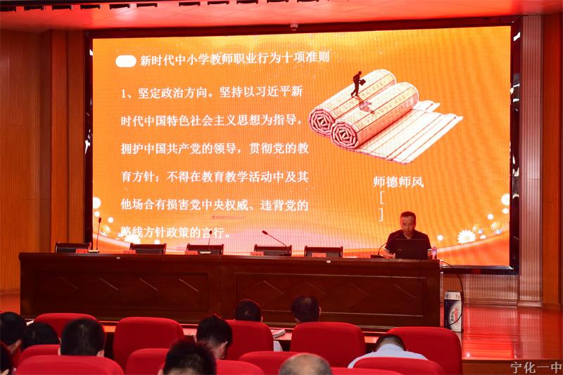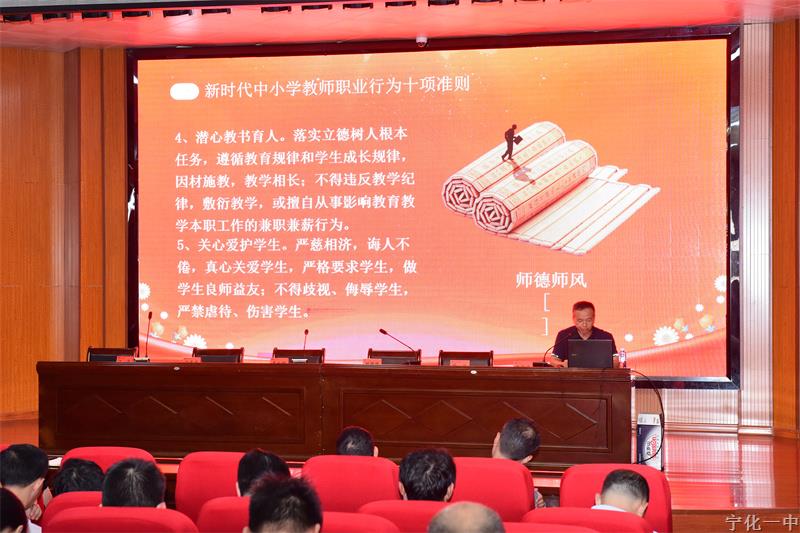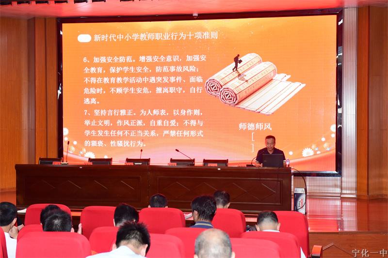 30日上午张斌副校长为全体教师作了题为《遵循“十项准则”,严守职业底线》的师德师风教育,并组织大家一起学习了《宁化县教育局关于加强师德师风系统性学习教育活动的通知》,结合教育部及省、市公开通报的典型案例、本地发生的师德失范案例开展警示教育,引导广大教师以案为鉴,认清失范行为,筑牢思想防线,坚守师德底线,依法治教,廉洁从教。