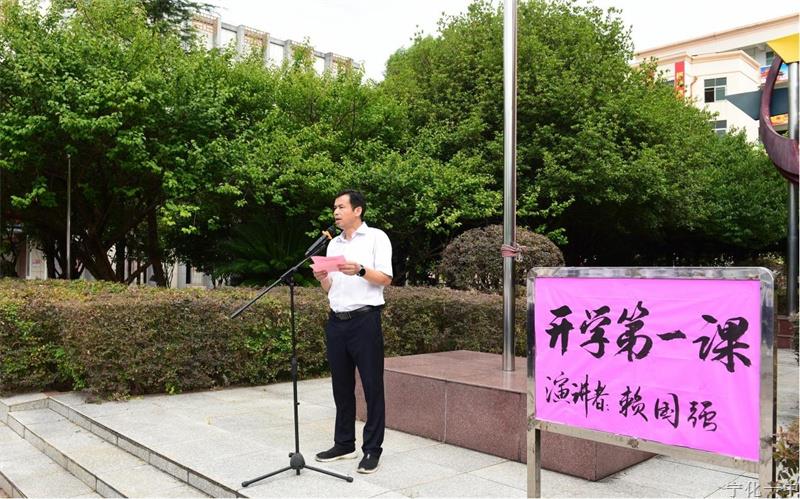 9月1日上午,伴随着庄严的升旗仪式,宁化一中党总支副书记、宁化一中校长赖国强借《开学第一课》的讲话。告诉同学们,要坚韧不拔,迎难而上:学习路上难免遇到困难,要发扬不畏艰难、顽强拼搏的精神,克服挫折,勇攀高峰。同时要脚踏实地,求真务实:从上好每一堂课、做好每一道题、参加好每一次活动做起,在交往中做到言行一致,在生活中坚守道德底线,让诚信成为青春最鲜明的印记。