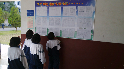 为了更好地规范学生书写,高一年段在育楼一楼设置了“让我告诉你……”的宣传公告栏,粘贴了一批优秀规范书写试卷。