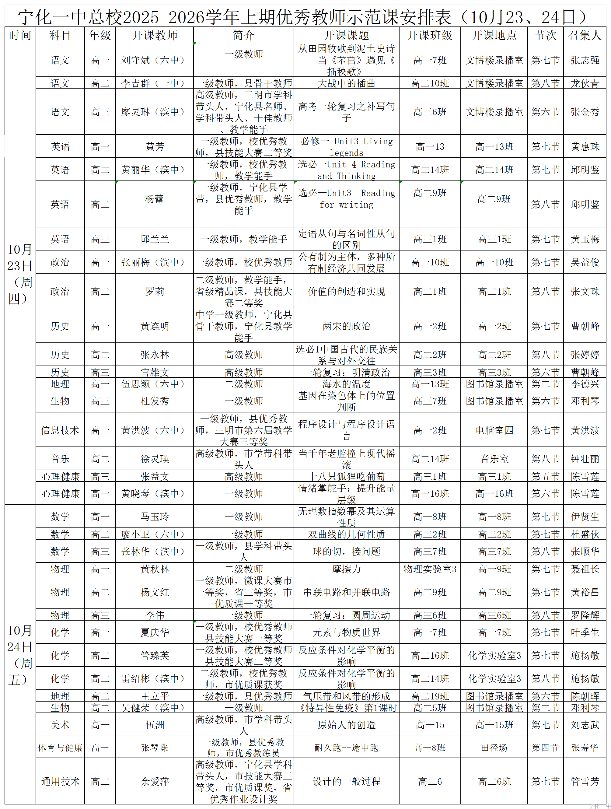 ——宁化一中总校2025-2026学年上学期优秀教师示范课活动圆满完成