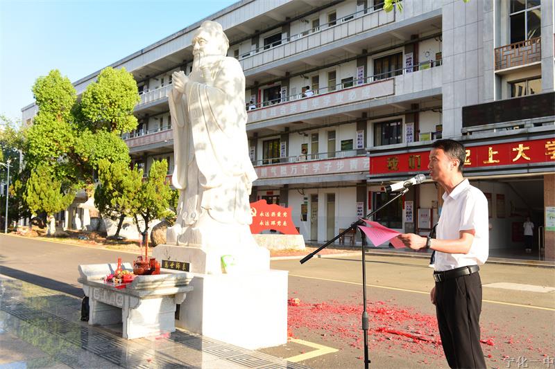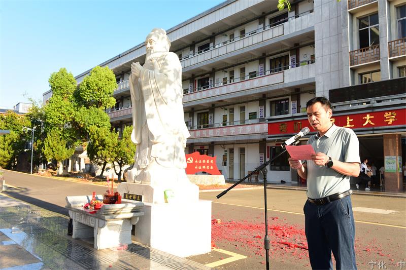 千年文脉,薪火相传;圣人遗风,润泽古今。为弘扬国学文化,传承华夏文明,在全社会形成尊师重教的社会风尚,特举办“赓续千年文脉,点亮青春梦想”为主题的纪念活动。2025年9月28日清晨,宁化一中部分师生在至圣广场隆重集会,致敬先贤,传承文明。纪念活动由江宏副校长主持。