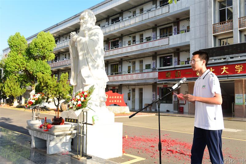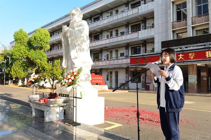伴着柔和清风与氤氲朝霞,师生庄严肃立,江宏副校长朗声致开场白“参天之木,必有其根;怀山之水,必有其源。孔子创立的儒家思想,早已融入了中华民族的精神血脉,成为我们修身立德、治学育人的智慧源泉。今日我们齐聚于此,是对先圣的缅怀,更是对中华优秀传统文化的传承践行”,并宣布宁化一中祭孔仪式正式开始。