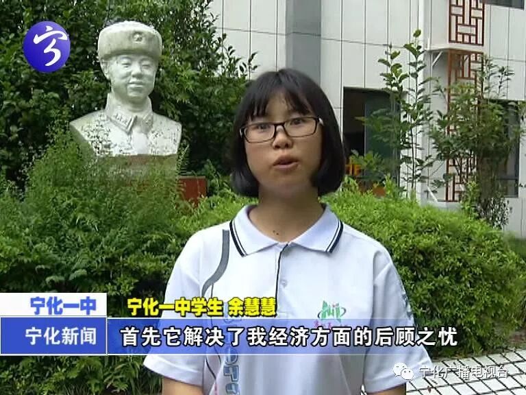 【同期声】宁化一中学生 余慧慧: 首先它解决了我经济方面的后顾之忧,第二点在学习中遇到困难,一想到很多人在背后支持我,就会比较有信心鼓励我自己,坚持下去,取得好成绩。