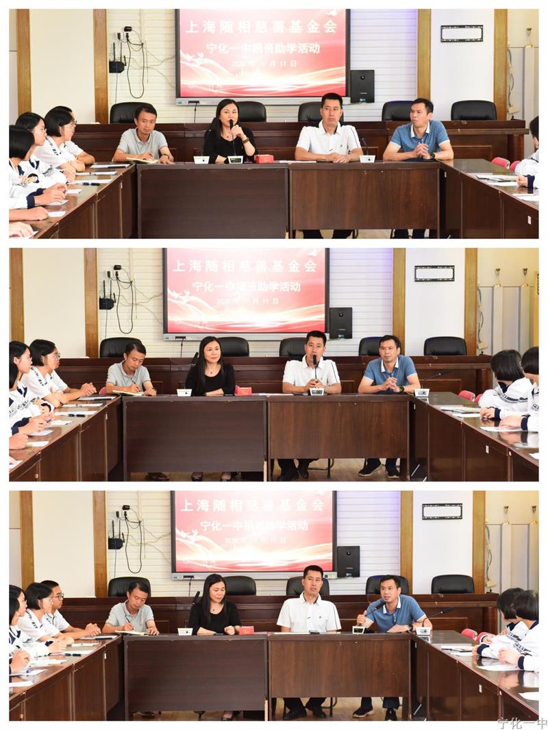 10月11日,上海随相慈善基金会副理事长朱居延先生和副秘书长李姿女士一行,从上海驱车返回家乡,在我校政成楼第二会议室为全县三所高中校30名困难学子送上每人1500元助学金,其中我校共24名。赖国强校长陪同,江宏副校长主持发放仪式。